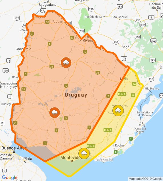 Alerta naranja por tormentas y lluvias fuertes para el noroeste, suroeste, centro-sur y parte del noreste.